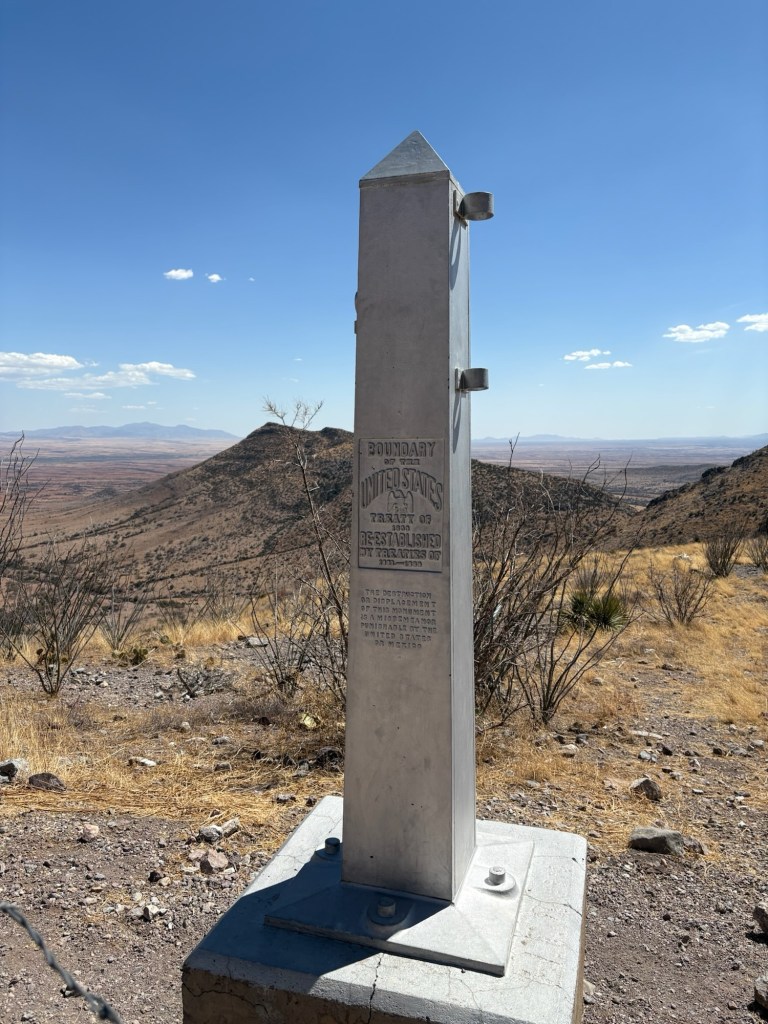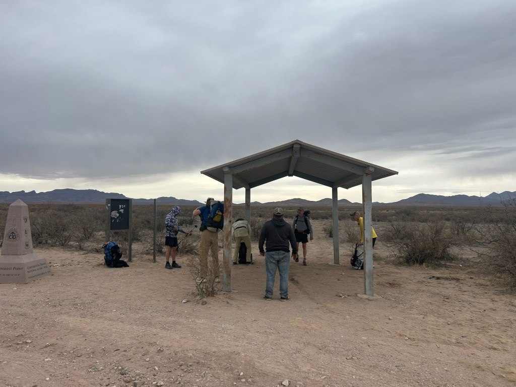 We were up at 5:00, packed up, and out of the hotel by 5:45. We walked up to the shuttle pick-up spot. After a short check in, we were on the road at 6:15 with 6 hikers in the SUV. After a short stop at the convenience store in Hachita we continued on to the border. The road soon turned to gravel and became progressively rougher. At about 9:30 we arrived at the border and after the obligatory photos at the monument, we were hiking.