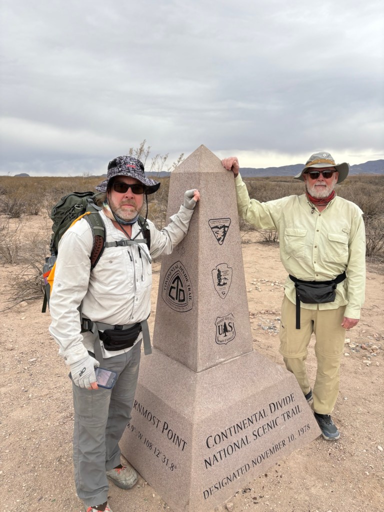 Due to other plans for the summer I didn’t think I’d have time to hike the entire CDT this year. But I decided to tackle the southernmost 500-some miles from the Mexican border to Grants, NM, in April and convinced Stevie T (trail name “One-K”) to come along for the first 150 miles or so. And since the southernmost 1.5 miles of the Arizona Trail were off limits the year we hiked (due to border wall construction) we decided to tag that border on our way to the CDT, and thus officially complete the AZT. So we flew to Tucson and rented a car. Then we drove to Bisbee, AZ to spend the night with my friends Ed and Rose before driving to the AZT trailhead the next day. It all went as planned, we had a great visit in Bisbee and tagged the border the next day. Then we drove back to Tucson and overnighted in a hotel before catching a Greyhound bus to Lordsburg, NM. We’ll spend the night here and catch the CDT shuttle to the trail terminus tomorrow.