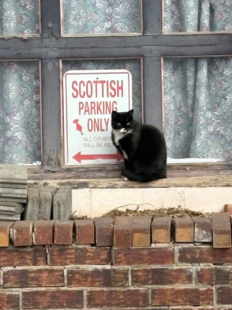 We woke at 6:00 to find it had snowed overnight. Not much, and it hadn’t stuck to the roads. After coffee and breakfast we headed out. It was chilly, but not uncomfortable until the wind increased. It was windy all day with intermittent snow. Not a pleasant day, but probably easier on our road walk than it would have been on a proper trail.
