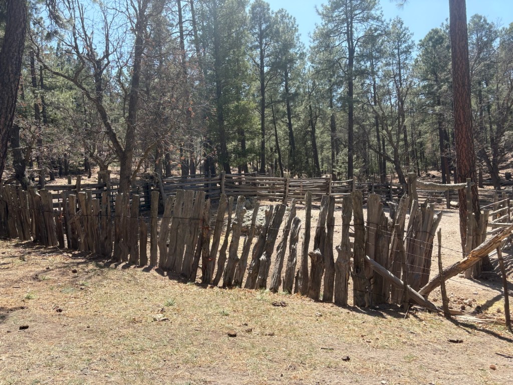 After a couple of miles the road walk entered a ponderosa pine forest and despite the steady climb it was beautiful. We stopped for second breakfast at a spring with a cistern, and filtered water while we ate. Then we began hiking uphill again. Eventually we turned off of that road onto another, and at a certain point the trail left the road and we were again hiking on a hiking path. Soon after, we topped out at 9121 feet and began a steep descent through a burned area from several years ago. The bushes were tenacious and the trail tread was not the best. There were also numerous blown down trees. After a bit we hit the trail junction with the Govina Canyon Alternate and followed that trail to a spring and cow pond. We filtered some water and pitched camp. As we were finishing supper another hiker named Data came by. We pointed him to the cistern and he went to get water. While he was there a National Forest Service enforcement officer drove up. We had a nice friendly chat with him and he went on his way. Data also took off, hoping to get a few more miles in. I think there are turkey hunters in the area (we saw three people without hiking gear) and a group of cows came by to check us out. Busy place.