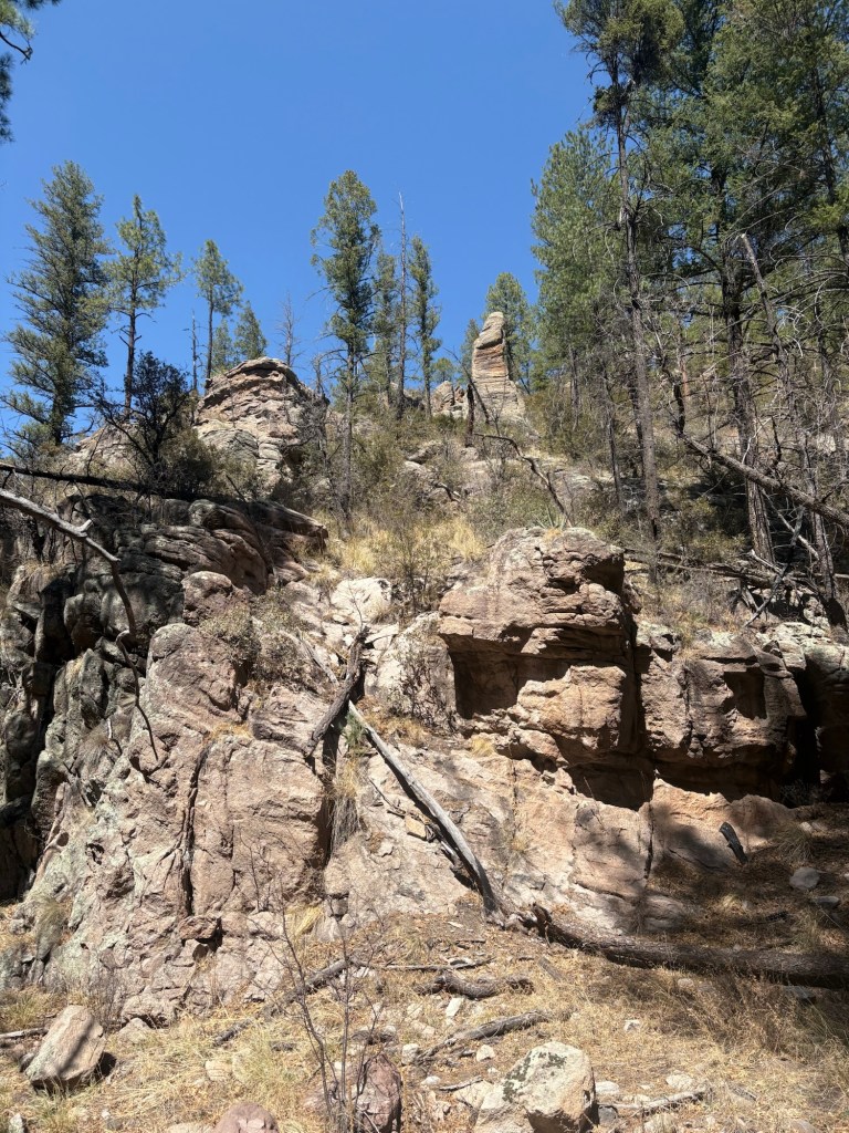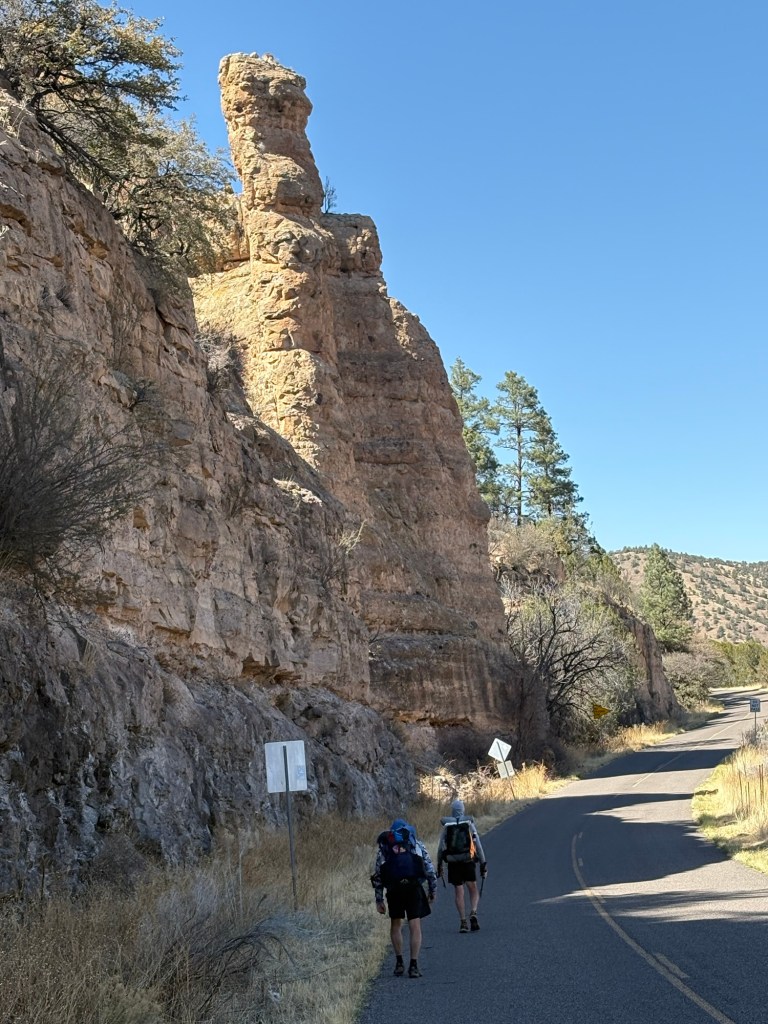 We started with a road walk to the Gila Cliff Dwellings and took a tour. It was very interesting and informative. After the tour, we had a lunch break before walking back to the trail. It had been a 3 mile detour – well worth the diversion.