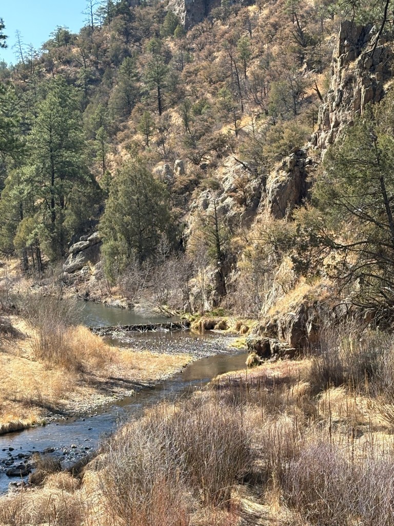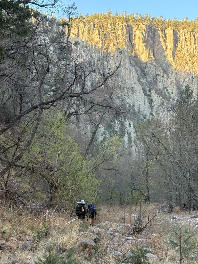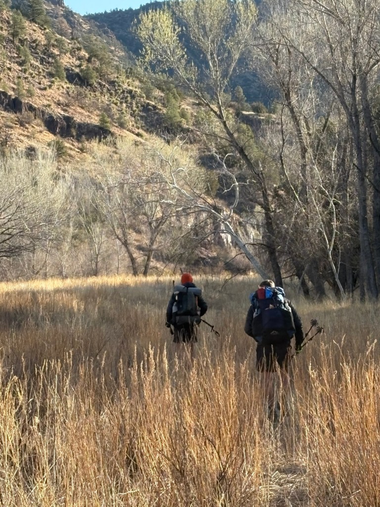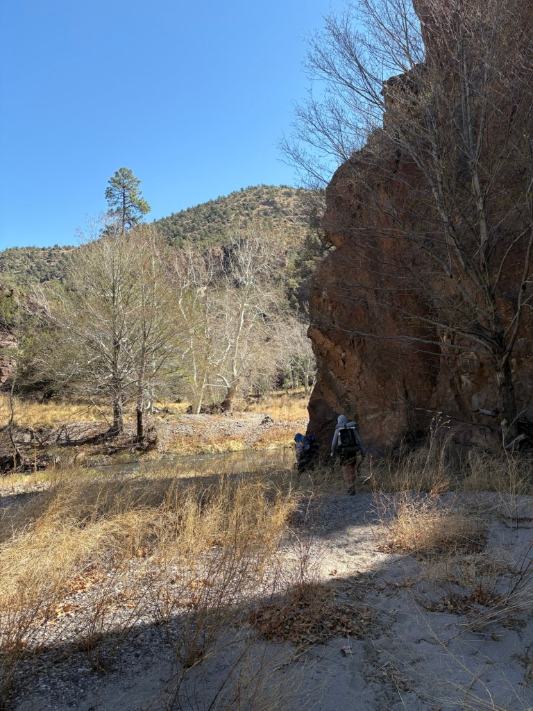 We saw one javelina, 8 mule deer, several raptors, and lots of trout in the river. The trout didn’t seem very skittish, either. 15 total miles today, 12 on trail.
