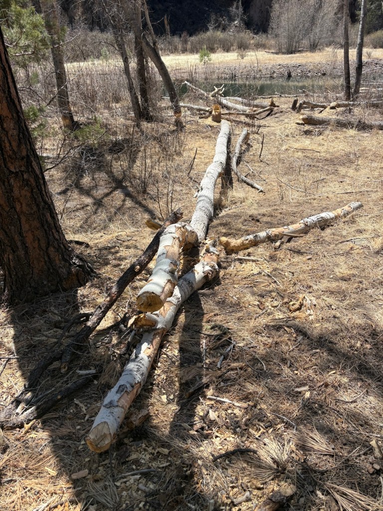 Route finding was a challenge for much of the day. It’s much faster to travel on a valid trail, but it wasn’t always easy to stay on trail, and the tremendous amount of beaver activity also complicated things. We crossed the river 132 times today. Previously, the deepest crossings were mid-thigh, but today a few were waist-high. That many crossings took a lot of energy, and we were ready to stop when we reached a junction with the Gila River High Route. 19 miles for the day.