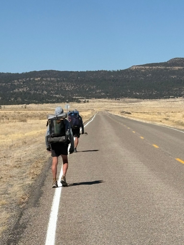 We slept undisturbed by the cows, and slept in until 6:00 because of the big miles yesterday. MT left camp a bit before Spokes and I did, and led the way most of the morning. It was a long road walk with a steady uphill grade. We started at about 7400 feet of elevation and topped out at just over 9100 on the trail later in the day.