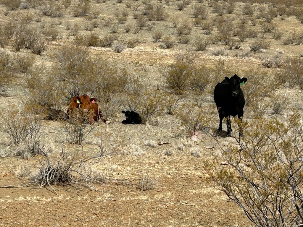 We all woke up independently at 5:15, before our alarms. After coffee and breakfast we packed up and were hiking before 6:30. For the first 20-30 minutes we hiked with our headlamps on. The sunrise was beautiful over the barren area we had just traversed. Leaving the flat area the trail passed into hilly country and eventually began following a road for several miles. Along the road we came upon an ancient and defunct Allis-Chalmers dozer. Soon after that, the trail left the road, passed through a fence gate, and went cross-country. We followed a fence line for several miles before arriving at the final water cache. We didn’t need much water, since town was only 7 miles away. We soon crossed a highway and went through a hilly area. At one point we came upon two cows with calves. One of the cows adopted what looked like a defensive posture, so we gave her a wide berth. Motherhood is tough enough without dealing with 3 grungy hikers. The wind was increasing as we walked and forecast to get very strong later in the day – 30 gusting to 50. We were worried a dust storm might develop and shut down the interstate, which would fill the hotels in town. So we tried calling the local number for the hotel, but got shunted to the national reservations line. They totally screwed up our reservation but we got it sorted out once we arrived at the hotel.