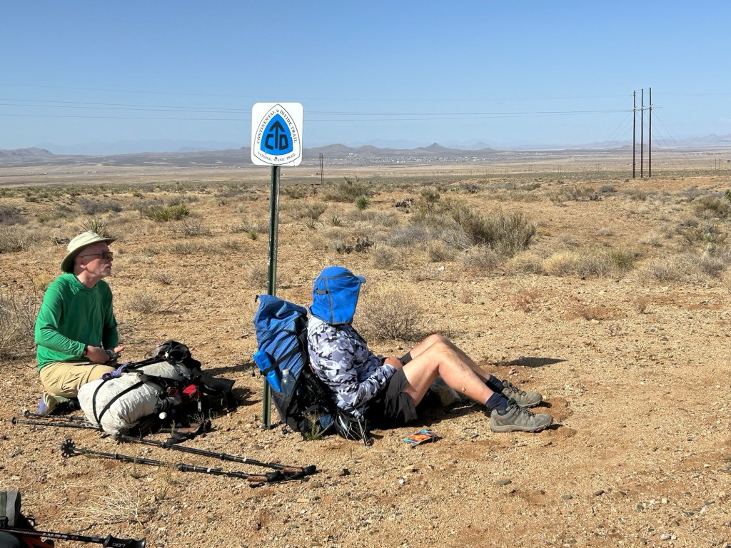After 9.5 miles we came to the next water cache and took a short lunch break in the meager shade from the steel cache box.