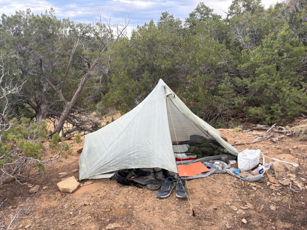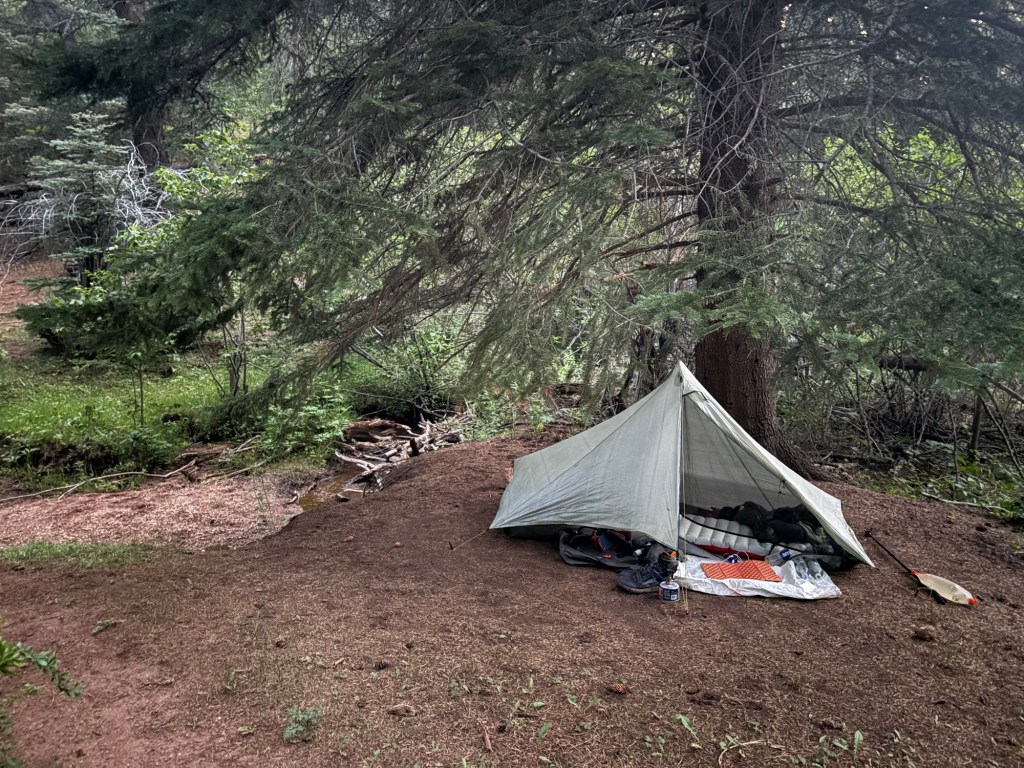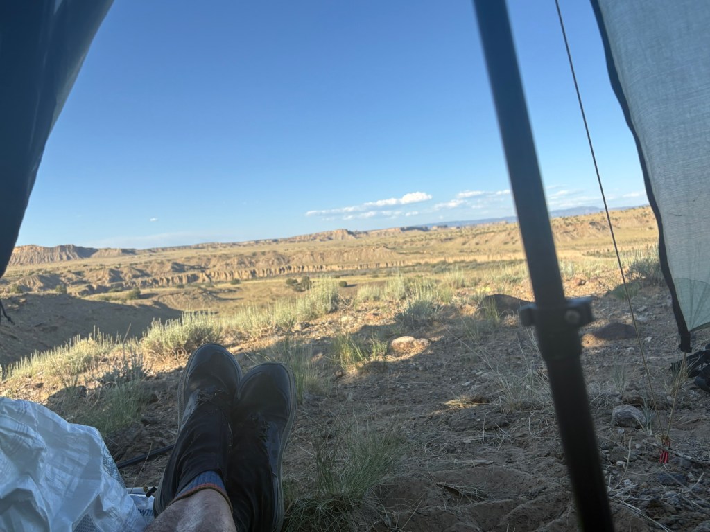 I found a tight spot for the tent, just off the trail. Normally I wouldn’t camp so close to the trail, but I’m the only one out here. All the northbounders are in Colorado or have flipped further north by now. I haven’t seen another human since I left Grants except for some ranchers in their pickups on July 4. The only person I’ve talked to was my wife, on the phone one evening when I was lucky enough to have a cell signal.