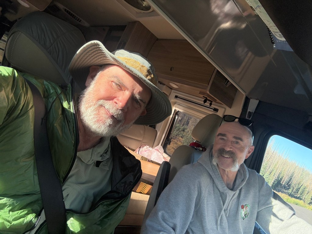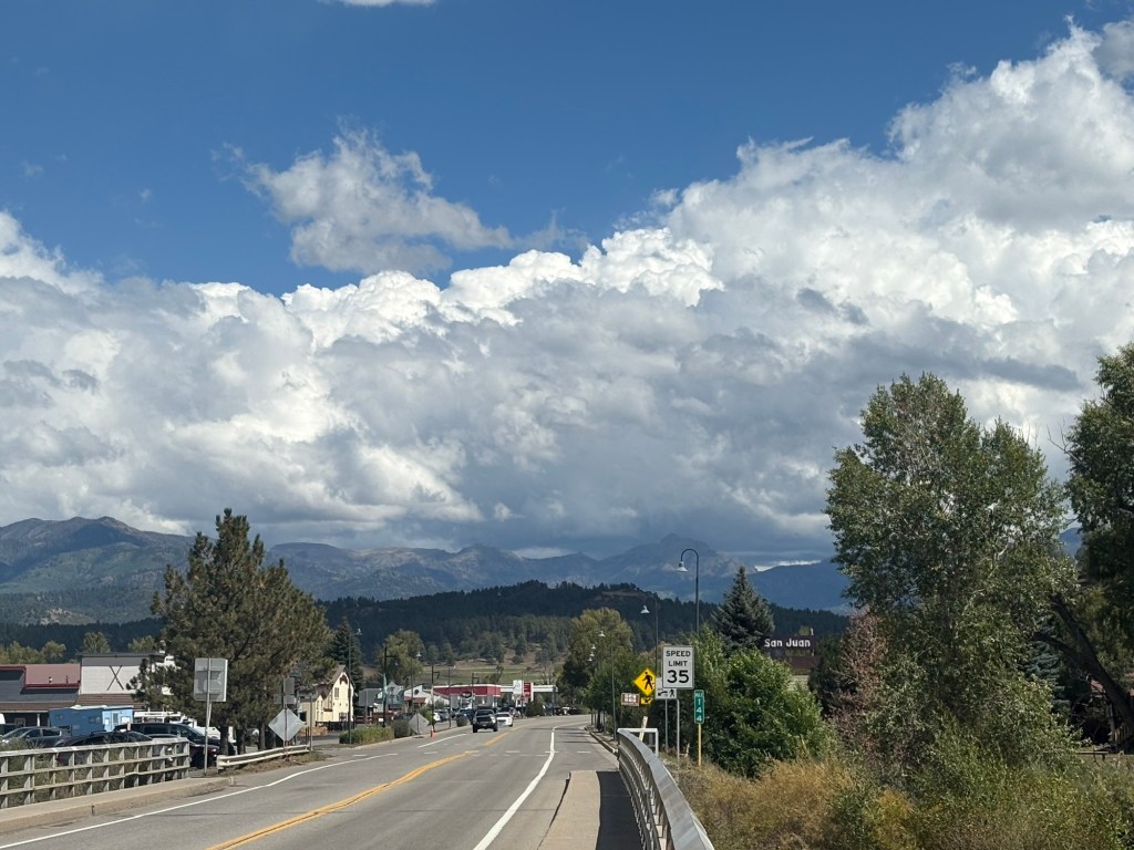 After a couple of zero days in Pagosa Springs, waiting for the weather to improve, I was ready to make my move this morning. I was out at the junction with my thumb out at 7:00. Many cars passed me by, but at 7:45 John stopped. He’s a local and he was heading for the pass to do a day hike. Good guy, we had a nice conversation.