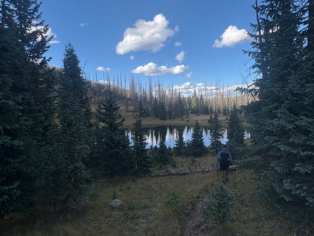 After about 16 miles I came to the junction with Baldy Lake. If this water source isn’t used, it would be almost 22 miles between Tank Seven Creek and the next one. It’s a steep 0.4 miles descent to the lake. When I got to the lake I decided to stay for the night. It was still early enough to get more miles in, but since it was only my second day on the trail I decided to give myself a break. Also, that climb back to the trail carrying a bunch of water would be easier with morning legs.